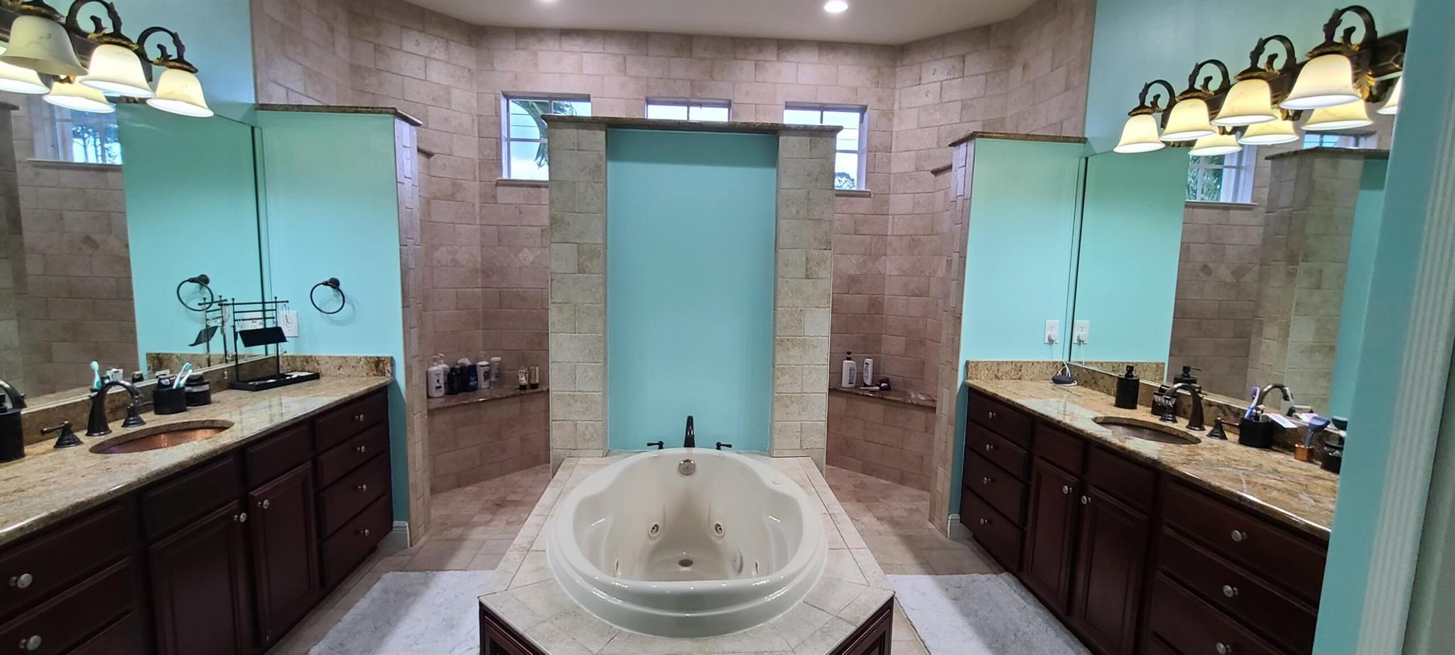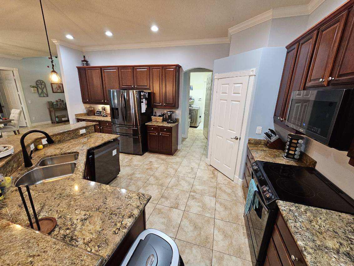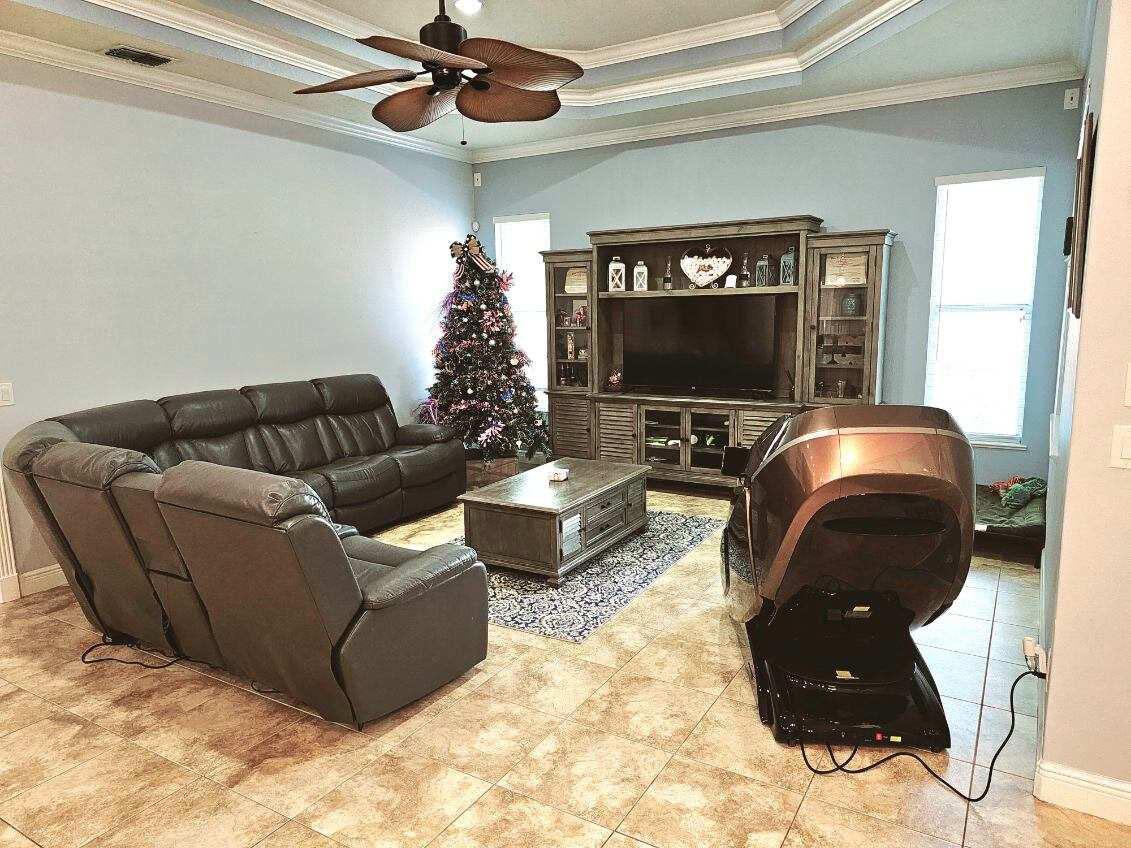 **MOTIVATED SELLER, ALL OFFERS WELCOME** Welcome to your dream home, a stunning 2,734 sq ft gem under air, with a total of 3,882 sq ft under roof. This elegant residence features 2 bedrooms, a versatile mother-in-law room, and a grand master bedroom. As you approach, you'll be greeted by a beautifully paved stone driveway leading to a spacious 2-car garage, complete with attic storage space. A large portico ensures you stay dry on rainy days as you step through the impressive French front doors into a home that boasts 10-foot vaulted ceilings and a direct view of the screened-in porch, pool, and sundeck.The entryway flows seamlessly into the great room, dining room, living room, or office.