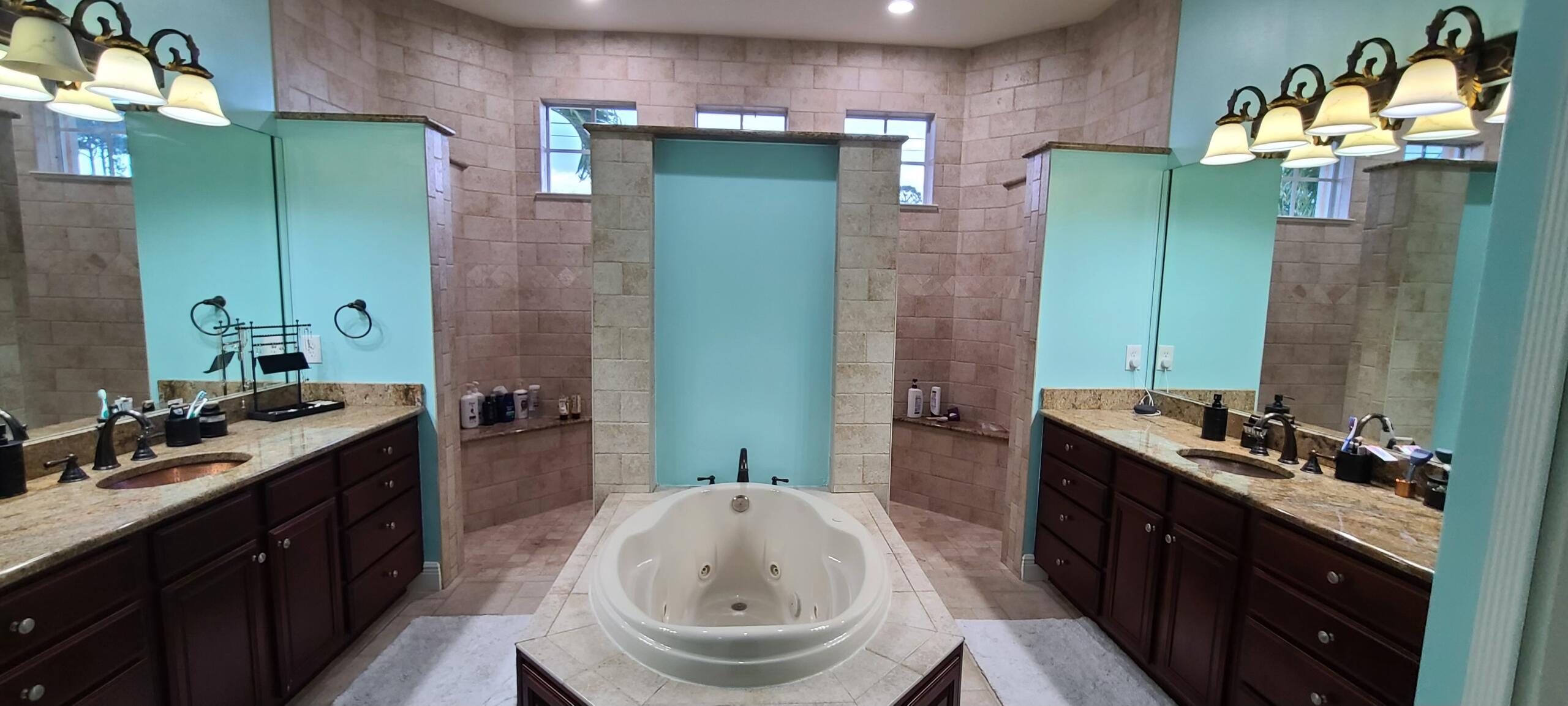 The master bedroom is a retreat, measuring 13' x 17', with a walk-through leading to two spacious walk-in closets and a luxurious master bathroom. This bathroom includes his-and-her sinks, a linen closet, a Sicilian-style shower, and a large whirlpool tub.