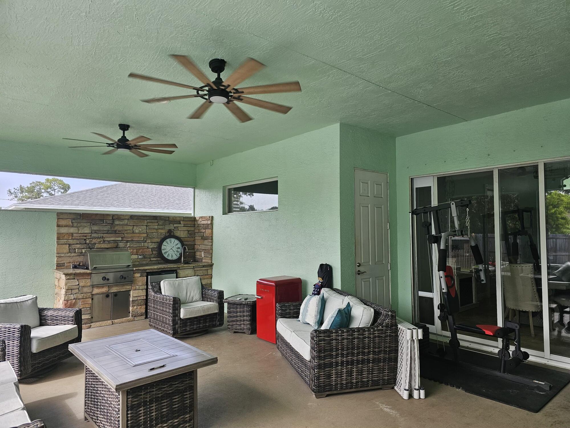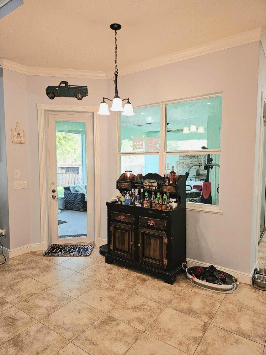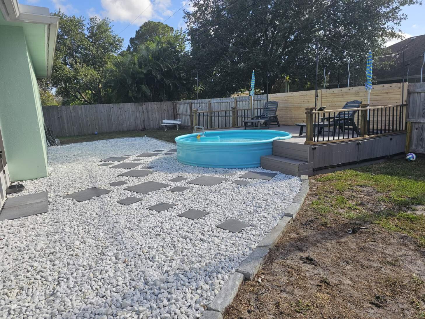 Step outside to the screened-in porch, complete with a built-in grill, sink, and mini-fridgeperfect for entertaining. The highlight is the gorgeous 10-foot wide by 23-inch deep relaxation swimming pool with a pool deck, all surrounded by a wood-paneled fence installed in 2021.