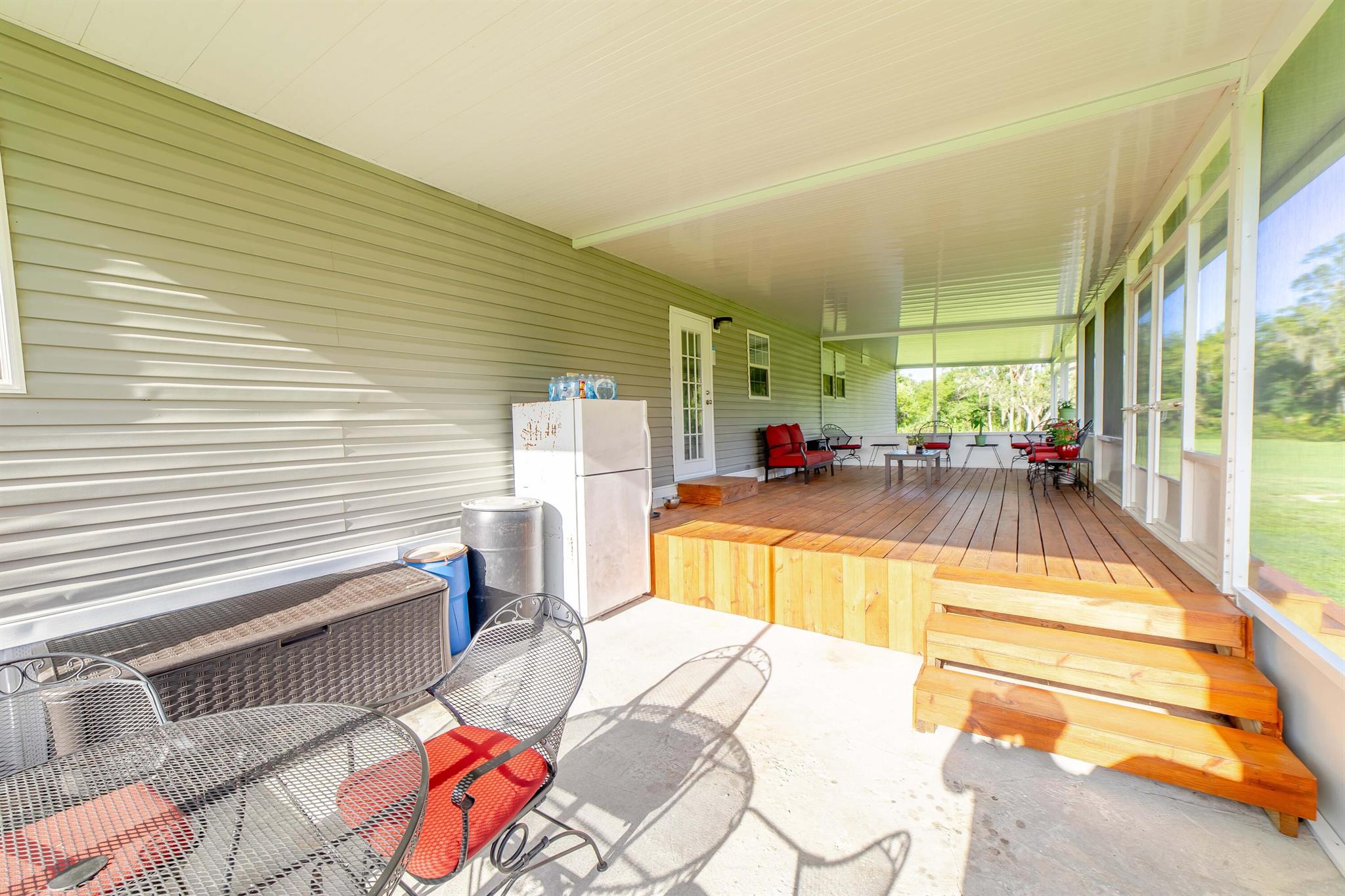 *FT.DRUM FARM* 3 Bdr 2 Bth, completely furnished DWMH on 4+ acres in a well-maintained and tranquil country setting. Step inside to this beautiful home 1984sq ft , walk-in closets, SS appliances, woodburning fireplace, gas stove, crown molding throughout, Jack and Jill sinks in master bath along with Roman tub and separate shower. Large indoor laundry room with full sink and tons of storage.Relax outside on the 27X14 screened in back porch or enjoy a walk down by the running creek. 48x24 Open Pole Barn with electricity, and 4 goat stalls. The property is fenced and cross fenced with easy access in and out. Home has an attached carport and enclosed pumphouse, along with 2 sheds. Must see in person. So many perks. Measurements are approximate.