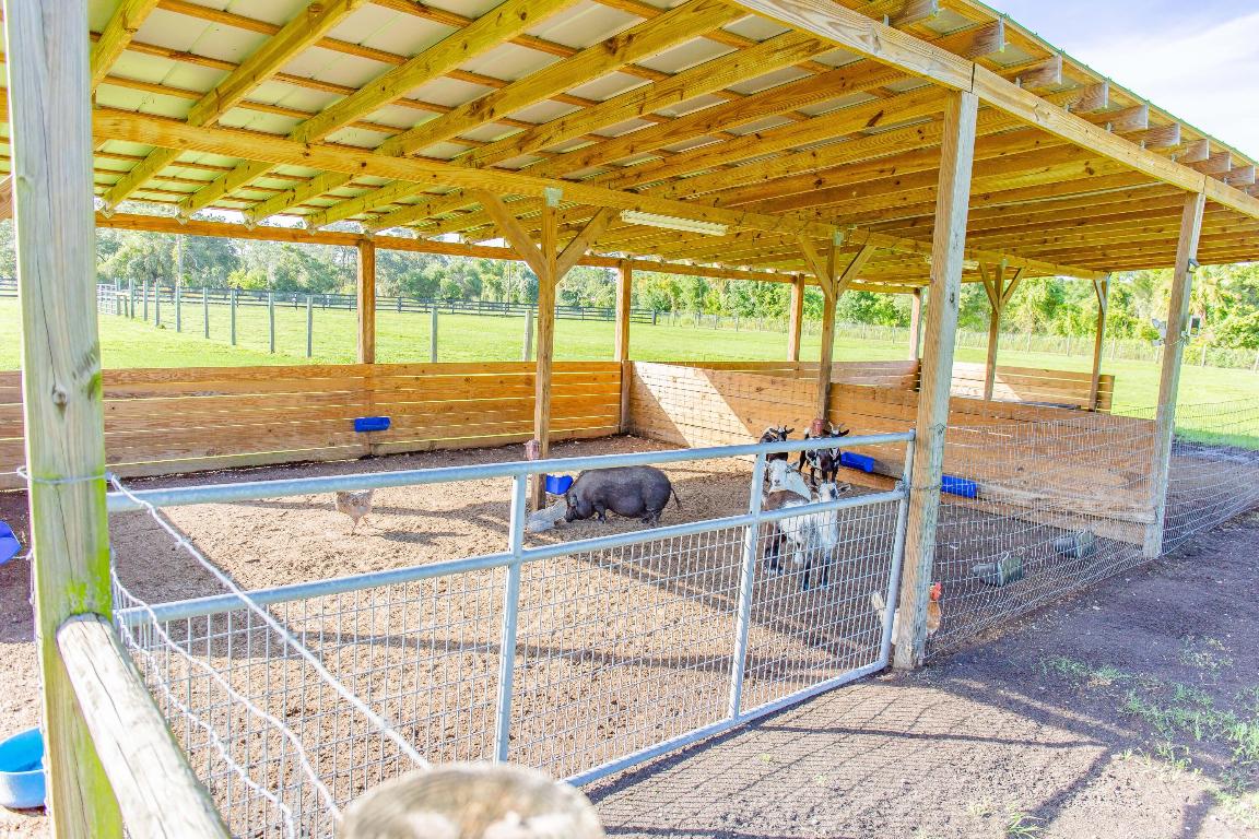 Relax outside on the 27X14 screened in back porch or enjoy a walk down by the running creek. 48x24 Open Pole Barn with electricity, and 4 goat stalls. The property is fenced and cross fenced with easy access in and out. Home has an attached carport and enclosed pumphouse, along with 2 sheds. Must see in person. So many perks. Measurements are approximate.